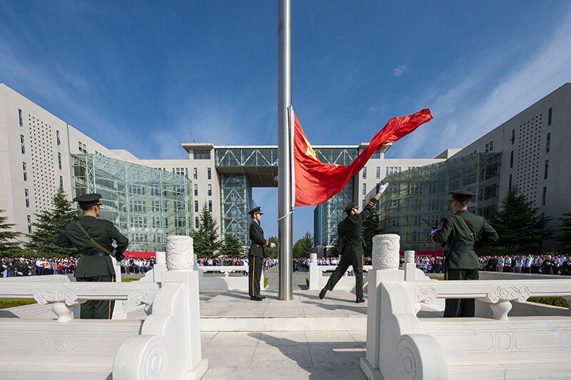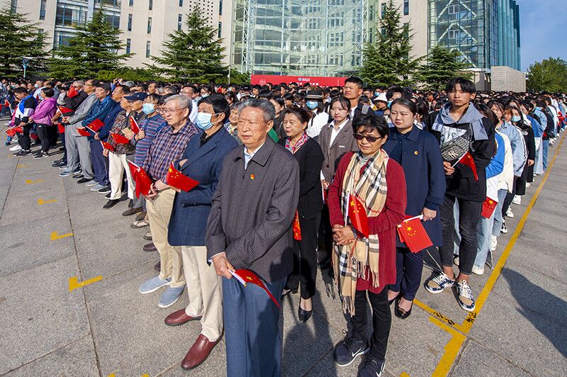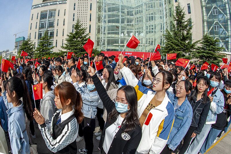 十月的煙臺大學校園里秋色絢爛,國旗廣場上師生手中揮舞的五星紅旗絢麗奪目,一抹抹“中國紅”凝聚著無比磅礴的中國力量和壯志凌云的時代夢想。