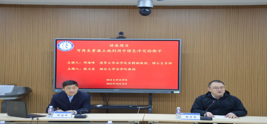 10月19日上午,清華大學法學院長聘副教授、博士生導師鄧海峰受邀在法學院西區305做了題為“可再生能源土地利用中綠色沖突的衡平”的講座,本次講座由煙臺大學法學院副院長張玉東教授主持。