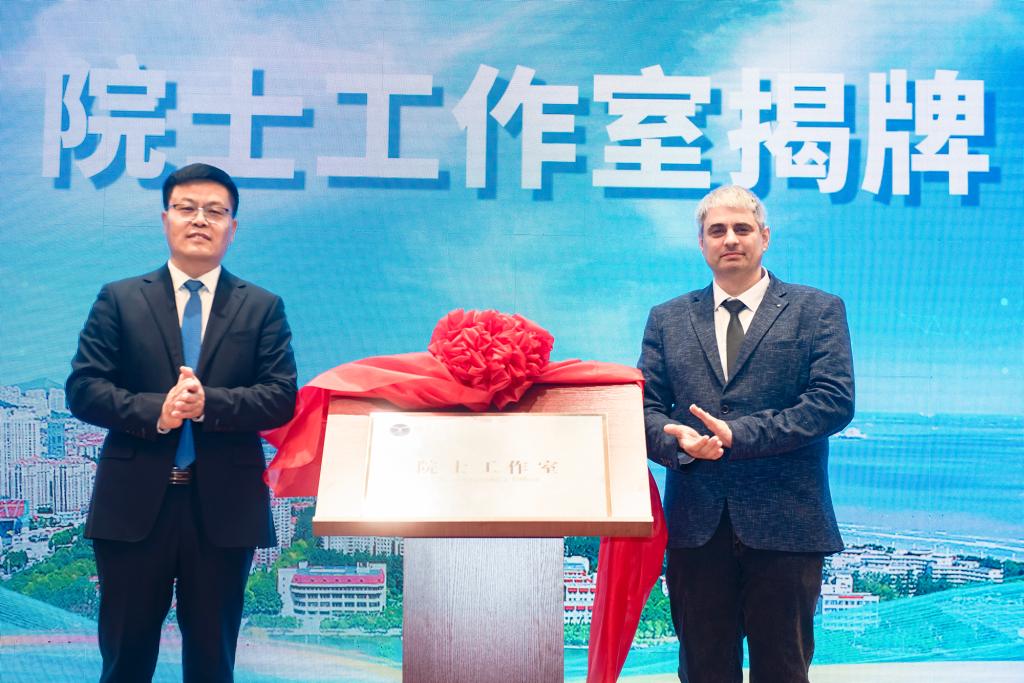 會上,煙臺大學黨委書記盧國強分別與貝奇科夫團隊成員尤金、精準材料高等研究院朱禮龍為院士工作室和高層次人才工作站揭牌。煙臺大學黨委副書記、校長郝曙光為貝奇科夫、葛興福、殷福星頒發聘書。