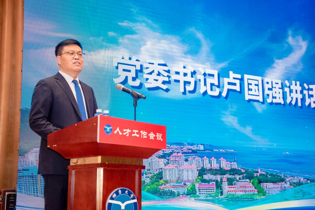 盧國強在總結講話中講述了建校初期學校從四面八方匯聚人才的感人場景。他指出,當前學校正處在改革發展的攻堅期,全校上下要進一步統一思想、凝聚共識,緊緊圍繞學校“一五八一”總體部署,深入實施人才強校戰略,為高質量發展提供堅實的人才支撐。一要提高政治站位,切實增強對黨管人才重要性的認識。要深刻理解人才引領發展的戰略地位,不斷形成和凝聚尊重人才、關愛人才、包容人才、團結人才的思想共識。二要正視問題不足,不斷厘清人才工作的思路理念。要從高層次人才數量與結構、人才效能釋放、人才工作主體意識以及人才發展環境四個維度深入剖析,對標建設高水平大學建設目標任務,補短板、強弱項。三要著力改革創新,不斷譜寫人才工作嶄新篇章。要聚焦學科布局,建強雁陣式人才隊伍,構建“3+10+N”人才工作格局;要聚焦目標任務,加強高層次人才引育,實現人才隊伍建設提檔升級;要聚焦效能釋放,深化體制機制改革,激發人才創新創造活力;要聚焦實際需求,持續優化人才環境,構建人才工作新格局。盧國強希望廣大教師和各類人才始終心懷“國之大者”,以科學家精神和教育家精神為引領,既要涵養“敢為人先”的志向和魄力,也要錘煉“甘坐冷板凳”的恒心和信念,更要秉持煙大“孺子牛”精神潛心教書育人。