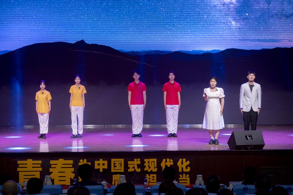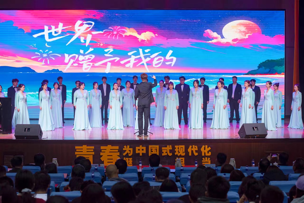 表彰環(huán)節(jié)中穿插了精彩的文藝節(jié)目,展現(xiàn)了煙大青年昂揚(yáng)向上的精神風(fēng)貌。主題MV《我們是煙大青年》記錄下煙大青年們?cè)趯?shí)驗(yàn)室里的專注目光、運(yùn)動(dòng)場(chǎng)上的矯健身姿、志愿服務(wù)中的溫暖笑靨,全方位展示了煙大學(xué)子的青春活力。朗誦《西去列車的窗口》深情描繪了投身西部計(jì)劃的青年們奔赴遠(yuǎn)方的堅(jiān)定身影,將“到祖國最需要處去”的誓言化作可感可知的視覺詩篇。歌曲《理想》唱出了煙大青年對(duì)理想的執(zhí)著追求。舞蹈《浮光》詮釋著青春的美好與活力。化學(xué)化工學(xué)院劉振興同學(xué)講述了“青春為中國式現(xiàn)代化挺膺擔(dān)當(dāng)”的故事,展現(xiàn)了煙大青年在科創(chuàng)報(bào)國使命面前的擔(dān)當(dāng)作為。合唱《世界贈(zèng)予我的》飽含感恩之情,《光榮啊,中國共青團(tuán)》激勵(lì)著煙大青年在新征程上不斷奮進(jìn)、勇往直前。