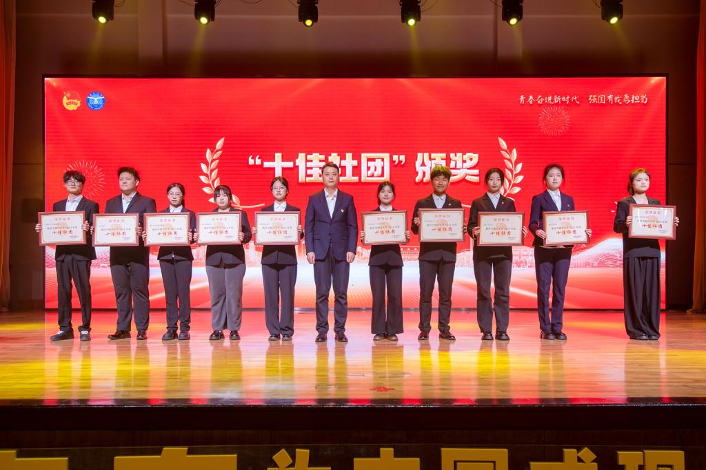 表彰大會(huì)上,學(xué)校領(lǐng)導(dǎo)為優(yōu)秀共青團(tuán)干部、優(yōu)秀共青團(tuán)員、十佳紅旗團(tuán)支部、十佳社團(tuán)、大學(xué)生科技創(chuàng)新工作先進(jìn)單位和紅旗團(tuán)委頒獎(jiǎng)。